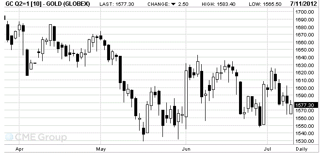 Августовский фьючерс на золото на COMEX сегодня вырос и сейчас составляет 1581.0 доллара за унцию.