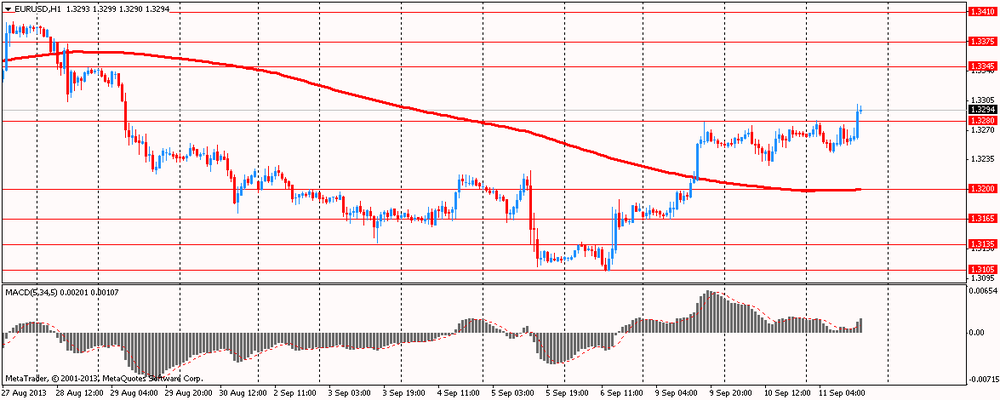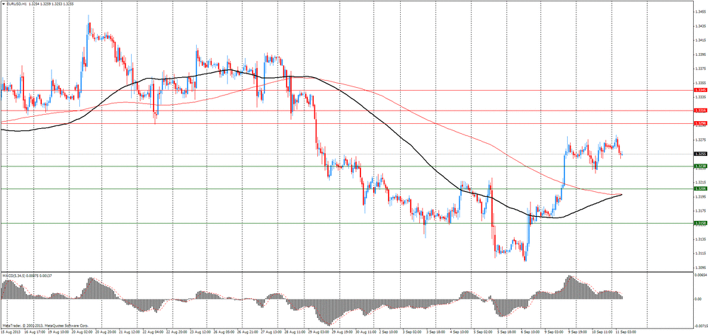 Стоимость евро резко выросла против доллара США, так как отложение голосования по одобрению военного вмешательства в Сирию уменьшило спрос на активы убежища. Отметим, что в понедельник первое голосование по военному вмешательству в Сирии, запланированное в сенате, было неожиданно отложено. Предполагалось, что оно состоится позднее на этой неделе, но затем сенаторы дали понять, что голосование может быть перенесено на более поздние сроки. Ранее президенту Обаме понравилось высказывание министра иностранных дел России Сергей Лаврова, который считает, что все запасы химического оружия Сирии нужно передать под международный контроль. Секретариат президента тщательно изучил предложение России по Сирии и решил на время отложить войну. Обама заявил, что это может стать первым шагом к прекращению конфликта.