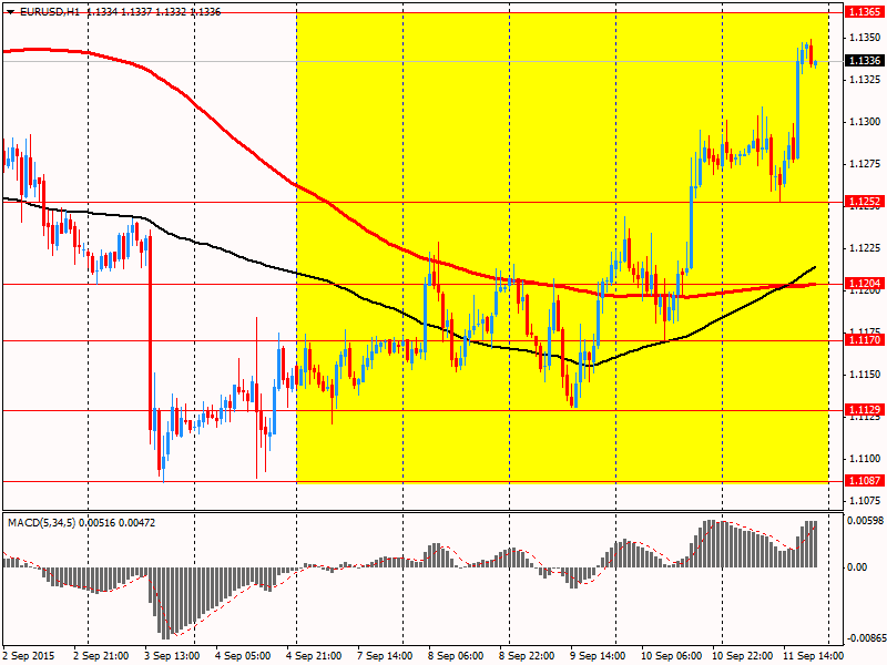В пятницу евро заметно вырос против доллара, достигнув максимума с 27 августа, что было вызвано коррекцией позиций перед выходными. На ход торгов также повлияли данные по потребдоверию США. Предварительные результаты исследований, представленные Thomson-Reuters и Мичиганским институтом, показали: в начале сентябре американские потребители чувствуют себя более пессимистично в отношении экономики, чем в прошлом месяце. Согласно данным, индекс потребнастроений в сентябре снизился до 85,7 против окончательного значения августа 91,9. Экономисты ожидали, что показатель составил 91,2. Несмотря на снижение на 6,7% по сравнению с августом, показатель остался немного выше, чем в тот же период предыдущего года, когда он составлял 84,6. Между тем, итоги исследований Wall Street Journal показали, что примерно 46% экономистов, опрошенных на прошлой неделе, прогнозировали, что первое повышение ставки ФРС произойдет на ближайшем заседании. Хотя относительное большинство выбрали сентябрь, большинство прогнозировали, что первое повышение ставки произойдет на более позднем заседании. Около 9,5% сказали, что ФРС повысит ставки в октябре. 35% сказали, что первое повышение произойдет в декабре, и 9,5% сказали, что ФРС подождет до 2016 года.