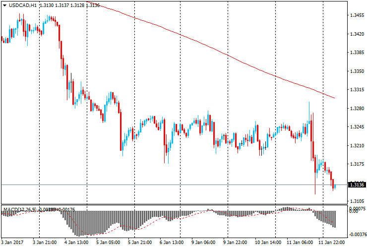 Сегодня пара USD/CAD снижается, продолжая динамику, начатую с начала 2017 года. Поддержку канадской валюте оказывают позитивные отчеты по занятости, торговому балансу и другие экономические данные из Канады. Также более позитивный прогноз по ценам на нефть и по экономике США и являются поддержкой для канадской экономики.