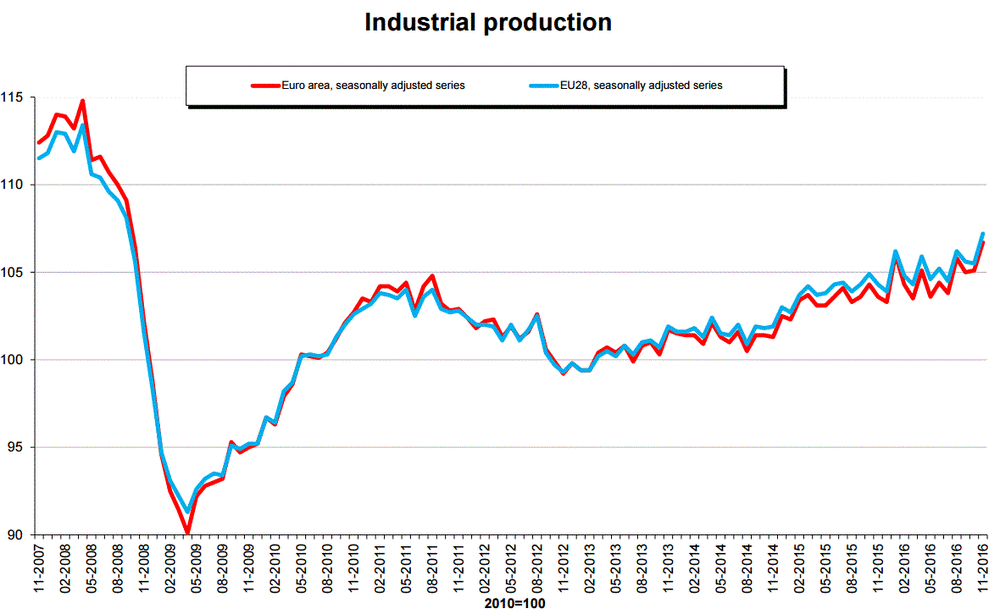 Отдельный отчет показал, что объем промышленного производства в Британии заметно увеличился в ноябре, превысив оценки экспертов, чему способствовало восстановление в секторе добычи нефти и газа. В целом, данные указывают, что экономика сохранила свой импульс в конце года, несмотря на шок от итогов референдума. УНС сообщило, что объем промпроизводства вырос на 2,1 процента в ноябре, оправившись от падения на 1,1 процента в октябре (пересмотрено с -1,3 процента). Аналитики ожидали, что производство увеличится на 0,8 процента. Тем временем, объем производства в обрабатывающей промышленности вырос на 1,3 процента, вслед за сокращением на 1,0 процента в октябре (пересмотрено с -0,9%). Прогнозировалось, что показатель увеличится лишь на 0,5 процента.