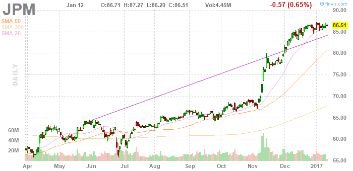 СЕО компании Джейми Даймон заявил в декабре, что по его ожиданиям торговая выручка вырастет примерно на 15% по сравнению с аналогичным периодом прошлого года, так как активность в торговле с фиксированным доходом выросла после президентских выборов в ноябре, в то время как фондовые индексы достигли рекордных уровней, сообщает The Wall Street Journal. Неожиданная победа Дональда Трампа, как ожидается, приведет к значительному смягчению регуляторных правил, введенных в действие после финансового кризиса 2008 года, что создает возможности для роста банков.