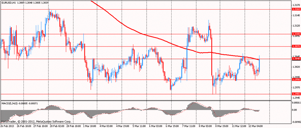 Иена торговалась около трехнедельного минимума против евро после выхода негативной статистики из Японии. Как стало известно, заказы на промышленное оборудование в стране упали на 13% в январе в месячном выражении, что стало самым сильным снижением за восемь месяцев. Аналитики ожидали падения всего на 1,7%. Кроме этого, на месячные результаты могут оказывать сильное влияние крупные заказы на оборудование. В IV квартале прошлого года Япония вернулась к росту благодаря снижению иены и усилиям премьер-министра Синдзо Абэ по борьбе с дефляцией и рецессией в стране.