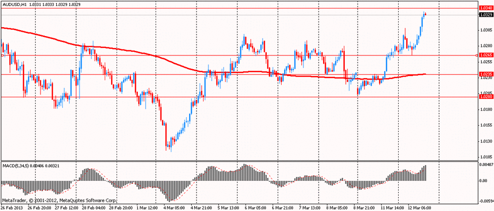 Опустившись до минимумов европейской сессии в районе $1.0265, AUD/USD возобновил рост, набрав порядка 70 пунктов и достигнув 2-недельного максимума на $1.0334.