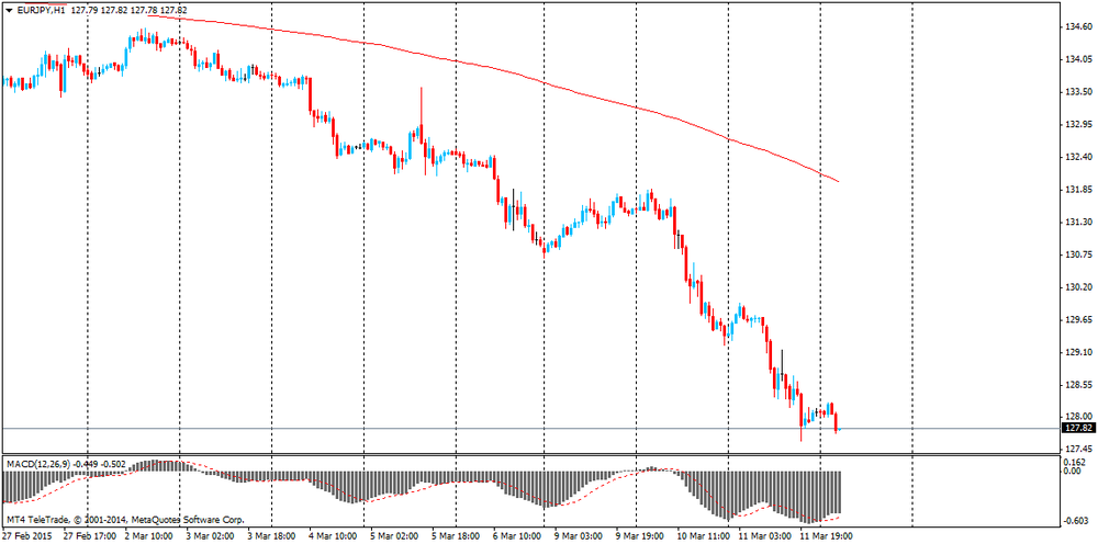 Фунт значительно подешевел против американской валюты, достигнув минимума с 10 июля 2013 года. Спрос на доллар по-прежнему сохраняется после публикации отчета по занятости в США, укрепившего надежды на подъем ставок. ФРС, как ожидается, начнет повышать процентные ставки в середине текущего года. Также инвесторы готовятся к заседанию ФРС, чтобы узнать, не отказались ли политики от своего намерения быть терпеливым в отношении сроков подъема ставки.