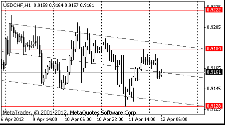 Сопротивление 1: Chf0.9185 (максимум американской сессии 11 апреля)
