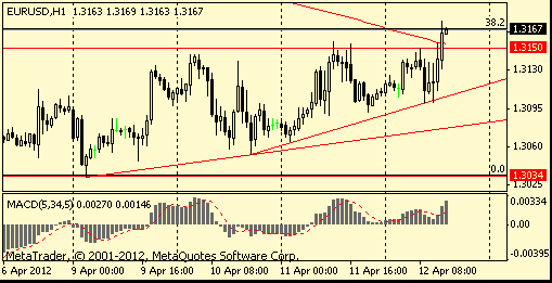 Пятницу начнет в 02:00 GMT Китай данными по изменению объема реального ВВП за 1 квартал, по объему инвестиций в основные фонды за март, изменению объема промышленного производства за март. В 02:00 GMT в Китае начнется пресс-конференция Национального Бюро Статистики. В 06:00 GMT Германия опубликует индекс потребительских цен за март. В 08:30 GMT в Британии выйдут индексы закупочных и отпускных цен производителей за март. США в 12:30 GMT опубликует индекс потребительских цен за март, а в 13:55 GMT - индекс настроения потребителей от университета Мичигана за апрель. В 17:00 GMT начнется речь председателя ФРС Бернанке.
