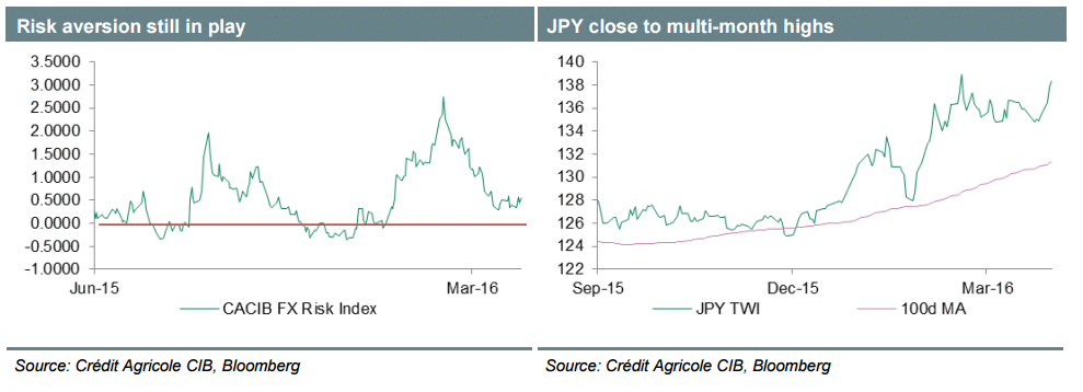 Иена росла с февраля ввиду спроса инвесторов на активы-убежища, снижения ожиданий относительно повышения процентных ставок в США в скором времени и репатриации денежных средств японскими инвесторами.