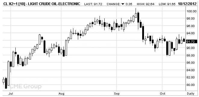 Стоимость ноябрьских фьючерсов на американскую легкую нефть марки WTI (Light Sweet Crude Oil) составляет 91.85 доллара за баррель на Нью-Йоркской товарной бирже.