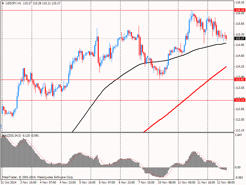Иена в течение дня продолжила падение против доллара, превысив при этом отметку Y116.00 впервые с октября 2007 года в связи выступлением премьер-министра Японии Абэ вчера, который заявил, что последние меры смягчения со стороны Банка Японии не были нацелены на валютные курсы. Помимо этого, Абэ заявил, что Япония придерживается позиции G7 и G20, согласно которой валютные курсы должны определяться рынком. Однако его слова не оказали понижательного воздействия на пару и под влиянием сверхмягкой денежной политики Банка Японии курс иены продолжает стремительно опускаться. Напомним, с 31 октября доллар укрепился по отношению к иене более чем на 5%, когда Банк Японии принял решение расширить стимулирующую программу до 80 трлн иен в год c 60-70 трлн иен.