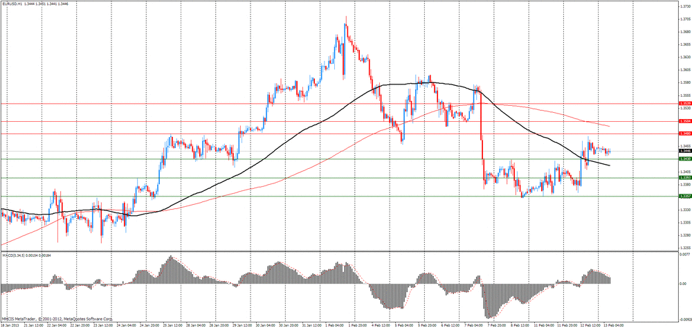 Участники рынка ожидают ежегодного обращения к Конгрессу президента США Барака Обамы. Агентство Bloomberg со ссылкой на администрацию президента США сообщает, что в данном выступлении, кроме всего прочего, будут затронуты вопросы расходов на развитие инфраструктуры, экологически чистой энергетики и образования. Ожидается, что Обама будет отстаивать точку зрения, что стимулирование экономического роста остается лучшей стратегией по сокращению бюджетного дефицита. Ожидалось, что выступление Обамы начнется в 02:00 GMT 13 февраля.