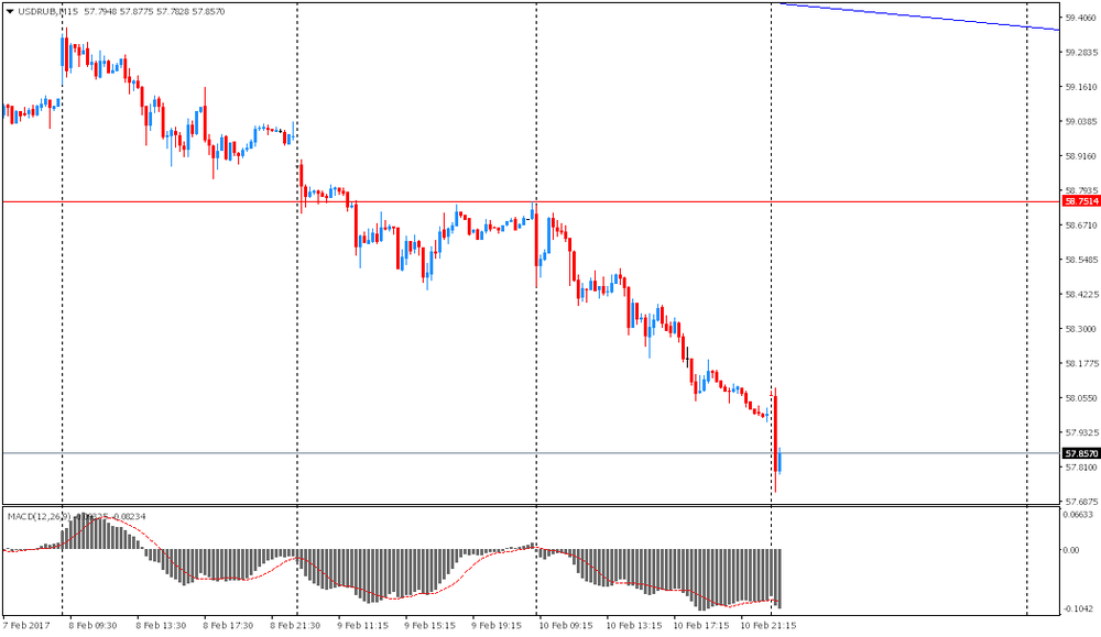 На динамику торгов также влияют ожидания выступления главы ФРС Йеллен. Во вторник Йеллен выступит перед банковским комитетом Сената, а в четверг - перед комитетом по финансовым услугам Палаты представителей. Она может использовать эту возможность, чтобы рассказать о последних изменениях в экономике и планах относительно процентных ставок. Если комментарии Йеллен будут "ястребиными", инвесторы могут пересмотреть ожидания касательно ужесточения денежно-кредитной политики ФРС. Согласно рынку фьючерсов, сейчас вероятность повышения ставки ФРС на мартовском заседании составляет 17,7% по сравнению с 13,3% днем ранее.