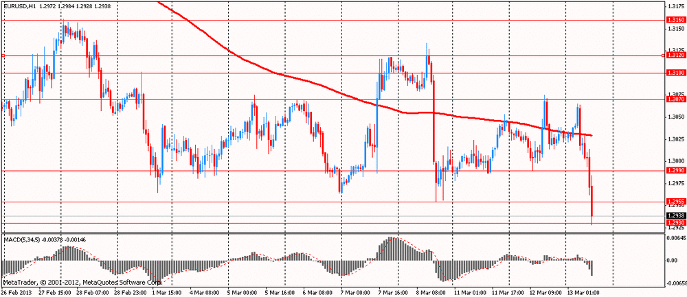 В настоящий момент пара EUR/USD торгуется около $1.2940, зарегистрировав падение на 0,7% за день и коснувшись минимального уровня с 11 декабря на $1.2928.