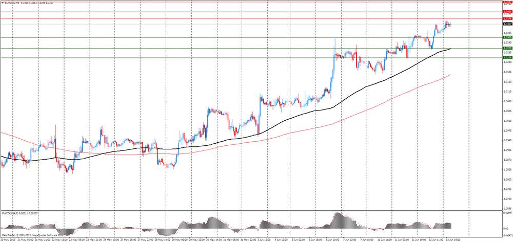 В пятницу в 09:00 GMT в Еврозоне выйдет индекс потребительских цен за май и основной индекс потребительских цен за май. В 12:30 GMT Канада объявит об изменении объема производственных поставок за апрель. Также в этом время в США выйдет индекс цен производителей и индекс цен производителей без учета цен на продукты питания и энергоносители за май, а также данные по сальдо расчетного счета платежного баланса за 1 квартал. В 13:15 GMT США выпустит коэффициент загрузки производственных мощностей за май, и объявит об изменении объема промышленного производства за май. В 13:55 GMT в США выйдет индекс настроения потребителей от университета Мичигана за июнь.