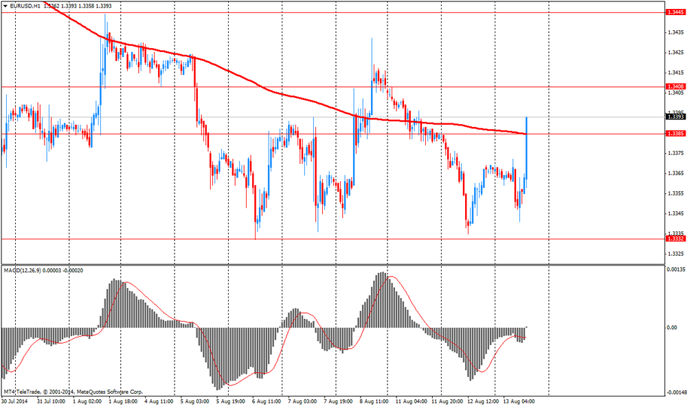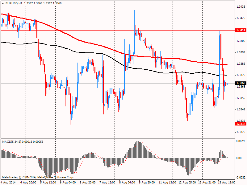 Евро отступил от сессионного минимума против доллара, но продолжает торговаться с понижением. На динамику торгов повлияли данные по настроениям в деловой среде от института ZEW. Индикатор экономических настроений от ZEW в Германии значительно снизился в августе 2014 года: соответствующий индикатор потерял 18,5 очков и в настоящее время составляет 8,6 пункта (долгосрочное среднее 24,6 пункта). Показав уменьшение восьмой раз подряд, индикатор достиг самого низкого уровня с декабря 2012 года, причем текущее снижение является самым сильным с июня 2012 года. Снижение экономических настроений, скорее всего, связано с текущей геополитической напряженностью, которая повлияла на немецкую экономику в настоящее время. В частности, текущие цифры по промышленному производству и поступающим заказам свидетельствуют о заметном снижении инвестиционной деятельности со стороны немецких фирм на фоне неопределенных перспектив продаж. Поскольку экономика в еврозоне не набирает обороты, есть признаки того, что экономический рост в Германии будет в 2014 году слабее, нежели ожидалось. Оценка текущей экономической ситуации в Германии снизилась. Соответствующий индикатор потерял 17,5 очков и составил 44,3 пунктов. Индикатор экономических настроений от ZEW для еврозоны также значительно снизился в августе. Индикатор потерял 24,4 пункта по сравнению с предыдущим месяцем, и в настоящее время составляет 23,7 пунктов. Индикатор текущей экономической ситуации в еврозоне снизился на 2,3 пункта до -33,8. Инвесторы также ожидают выхода сегодняшних данных. Еврозона опубликует отчет по инфляции, а также предварительные данные по росту во втором квартале в еврозоне, Германии и Франции. Слабые данные по росту и инфляции добавят давления на Европейский центральный банк реализовать новые меры по укреплению роста экономики после снижения ставок до рекордно низкого уровня в июне.