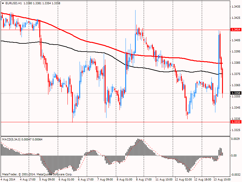 Первоначально росту пары помогли слабые данные по США, которые показали: расходы американцев в розничных сетях США в июле остались без изменения. Это последний признак хрупкого потребительского спроса, который может оставить экономику на шатких позициях во 2-м полугодии. Как сообщило Министерство торговли, розничные продажи и продажи продуктов питания в июле с учетом коррекции на сезонные колебания остались без изменения по сравнению с предыдущим месяцем. Американцы тратили больше на продукты питания и одежду, но сократили расходы на автомобили и на покупки в универсальных магазинах. Без учета автомобилей розничные продажи повысились на 0,1% в июле по сравнению с предыдущим месяцем. Экономисты ожидали, что продажи вырастут на 0,2% в июле и поднимутся на 0,4% без учета автомобилей. Розничные продажи выросли на 0,2% в июне по сравнению с предыдущим месяцем и не изменились по сравнению с более ранней оценкой Министерства торговли. В мае продажи выросли на 0,4% по сравнению с предыдущим месяцем; результат был пересмотрен в сторону понижения от +0,5%.