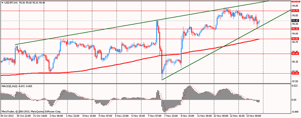 В настоящий момент пара торгуется на Y99.40. Преодоление уровня поддержки Y 99.15 откроет путь к Y 98.85 (МА(200) для Н1).
