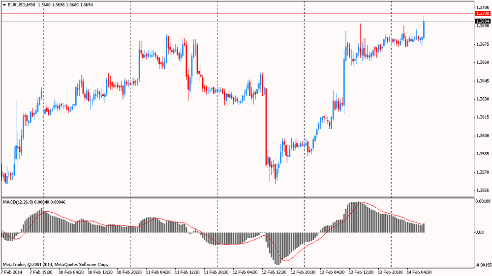 Евро вырос приблизившись к $1.3700, после выхода позитивных данных по ВВП Германии. Согласно опубликованным данным, предварительное значение по росту ведущей экономики Европы за 4-й квартал выросло на 1.4% по отношению к прошлому году, тогда как предыдущее цифры и ожидания аналитиков были в области +1.1% и +1.3% соответственно. Таким образом данные превысили оценки экспертов, указав на стремительный рост ведущей экономики ЕС. Также стоит добавить, что ранее сегодня были представлены данные по росту экономики Франции, которые также оказались позитивными.