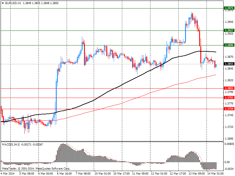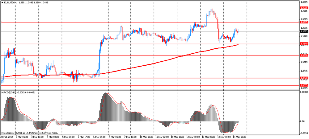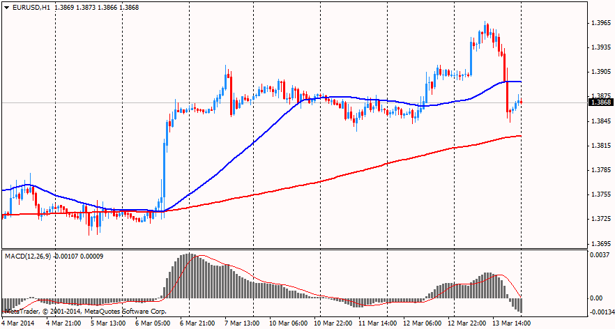 Курс доллара снизился против евро из-за нежелания рисковать на фоне возобновившихся опасений по поводу Украины и Китая. Также давление на валюту оказали слабые американские данные. Один из отчетов показал, что индекс цен производителей, который измеряет изменения цен на все, от продуктов питания до энергии и транспортных услуг, снизился на 0,1% по сравнению с предыдущим месяцем. Экономисты ожидали 0,2 %-ный рост. Показатель за январь остался без изменений на уровне роста на 0,2% . Индекс вырос на 0,9% в феврале после ежегодного увеличения на 1,2% в предыдущем месяце.