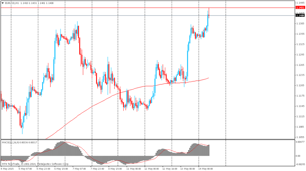 Кроме того, по данным Департамента труда, цены американских производителей уменьшились по итогам прошлого месяца, что является признаком устойчиво низкой инфляции в экономике. С учетом сезонных колебаний индекс цен производителей снизился в апреле на 0,4%, компенсировав повышение на 0,2% по итогам прошлого месяца. Основной индекс, который исключают цены на продукты питания и энергию, также упал на 0,2%. Без учета продуктов питания, энергии и торговых услуг, индекс цен производителей вырос на 0,1%. Экономисты ожидали, что общий показатель увеличится на 0,2%, а основной индекс - на 0,1%. По сравнению с апрелем прошлого цены производителей снизились на 1,3%, а основной индекс вырос на 0,8%.