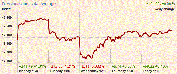 В пятницу основные фондовые индексы закрылись с повышением, не смотря на то, что ряд вышедших положительных экономических данных показал здоровый старт в третьем квартале. Так, промышленное производство в США расширилось самыми сильными темпами за последние восемь месяцев в июле, так как автопроизводство выросло, дав бычий сигнал для экономического роста в третьем квартале. Промышленное производство выросло на 0,6% в прошлом месяце после пересмотренного с понижением роста на 0,1% в июне. Экономисты ожидали прироста всего 0,3% на в прошлом месяце.