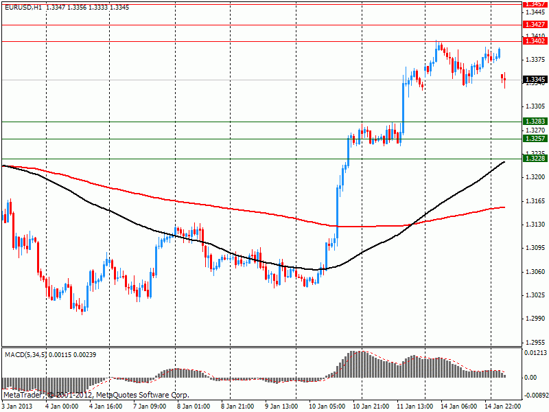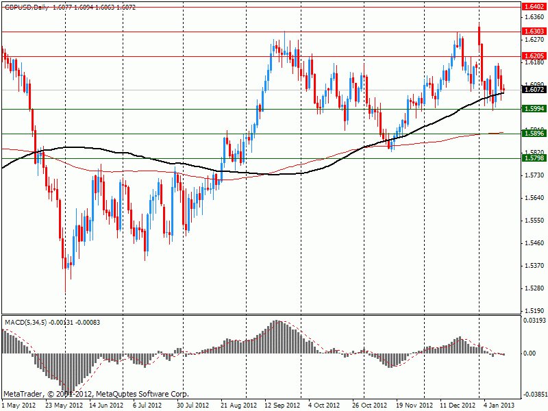 Отметим, что в своем выступлении президент США Барак Обама, как и ожидалось, затронул вопрос повышения потолка госдолга, заявив, "абсурдно даже думать о том, чтобы не повышать предел долга”. Также Обама отметило, что “экономика США растет, ее должен ждать хороший 2013 год”. В целом, выступление Обамы существенного влияния на динамику торгов не оказало.