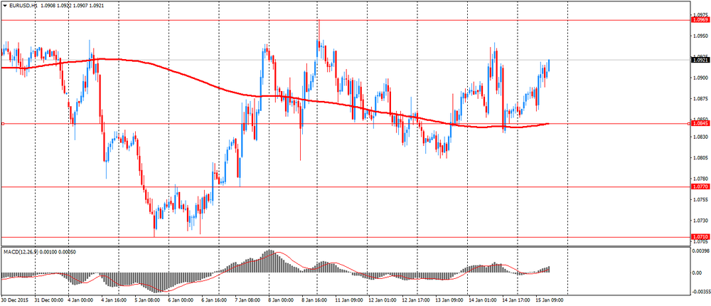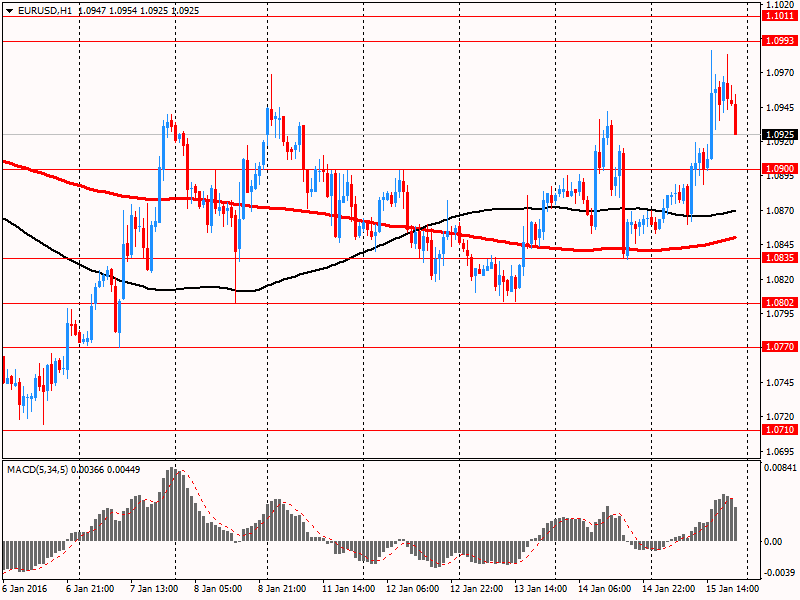 Евро значительно подорожал против доллара, обновив максимум января. Первоначально поддержку валюте оказывало усиление бегство от рисков на фоне обвала европейских фондовых индексов и снижение котировок нефти ниже отметки $30. Рост евро ускорился после выхода слабых американских данных и негативного старта торгов на фондовом рынке США. Министерство торговли сообщило, что розничные продажи в США неожиданно снизились в декабре, добавив признаки того, что экономический рост резко затормозился в четвертом квартале. Розничные продажи снизились на 0,1 процента после пересмотренного в сторону усиления роста на 0,4 процента в ноябре. Экономисты прогнозировали, что розничные продажи останутся без изменений после роста на 0,2 процента в ноябре, о котором ранее сообщалось. Для всего 2015 года, розничные продажи выросли на 2,1 процента, это самый слабый показатель с 2009 года, после роста на 3,9 процента в 2014 году. Розничные продажи без учета автомобилей, бензина, строительных материалов и услуг питания упали на 0,3 процента после роста на 0,5 процента.