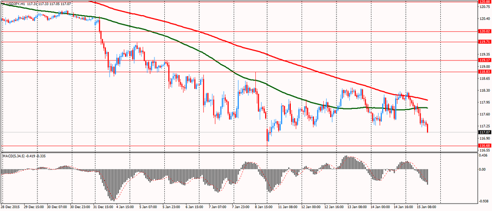 Японская иена существенно укрепилась против доллара, преодолев отметку Y117.00 и обновив максимум текущего месяца, чему способствовало бегство от риска на всех финансовых рынках и слабая статистика по производственной активности и розничным продажам США. Спрос на иену также вырос после оптимистичных комментариев главы Банка Японии Куроды по перспективам национальной экономики. Он заявил, что центральный банк "в настоящий момент" не рассматривает возможность дополнительного смягчения политики, хотя общий рост потребительских цен пока далек от официального целевого уровня инфляции, составляющего 2%. Тем не менее, Курода отметил, что "Банк Японии без промедления скорректирует политику в случае изменений в ценовом тренде". Курода вновь заявил, что ценовой тренд, который исключает временные факторы, подобные резкому снижению цен на нефть, остается стабильным.