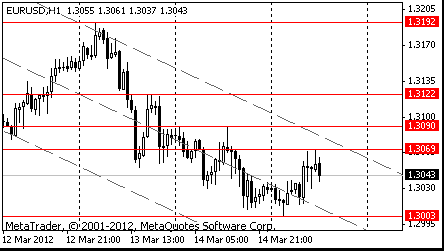 В 08:30 GMT станет известно решение Национального Банка Швейцарии по ставке Libor (ожидается без изменений) и начнется заседание Национального Банка Швейцарии по вопросу денежно-кредитной политики. В 09:00 GMT будет опубликован ежемесячный отчет ЕЦБ. Продолжит день блок статистики США: в 12:30 GMT - индекс цен производителей за февраль, число первичных обращений за пособием по безработице (ожидается увеличение до 357K против 362K в предыдущем месяце), число повторных заявок на получение пособия по безработице, в 13:00 GMT - чистый объем покупок долгосрочных американских ценных бумаг иностранными инвесторами за январь (прогнозируется рост до $29.3B против $17.9B в предыдущем месяце), общий чистый объём покупок американских ценных бумаг иностранными инвесторами, в 13:30 GMT - производственный индекс Empire Manufacturing за март, в 14:00 GMT - производственный индекс ФРС-Филадельфии. Завершит день в 23:50 GMT Япония публикацией протокола совещания Банка Японии по вопросам кредитно-денежной политики.