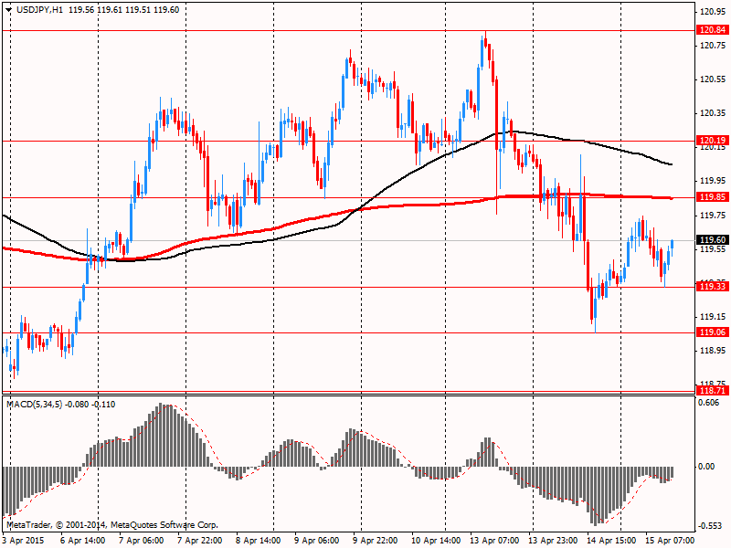 Доллар США немного вырос по отношению к иене после того как вчера достиг 6-дневного минимума Y119,07. Однако пара USD/JPY испытывает давление со стороны ухудшения отношения к американской валюте после более слабого, чем ожидалось, роста розничных продаж в США, который в марте увеличился на 0,9% по сравнению с предыдущим месяцем против прогноза роста на 1,1% и неожиданного падения индекса оптимизма малого бизнеса NFIB (до 95,2 в марте с 98,0 в феврале против прогноза 98,1).