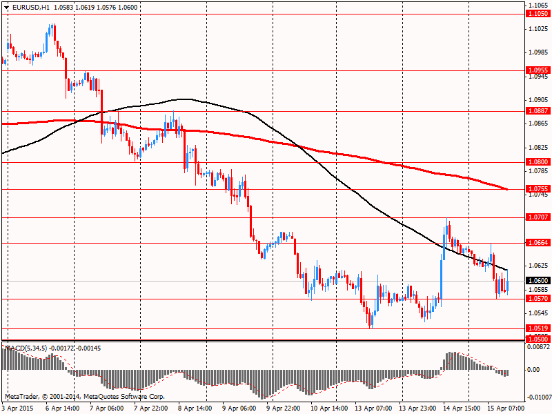 Давление на доллар также оказало понижение прогнозов по США от Международного валютного фонда. МВФ в своем Экономическом прогнозе по мировой экономике прогнозирует, что рост экономики останется без изменений на 3,5% в 2015 году. Прогноз на 2016 был пересмотрен на повышение до 3.8% против 3.7% ранее. Прогноз по развивающимся рынкам также был оставлен на 4.3%. МВФ прогнозирует рост экономики США на уровне 3.1% против январской оценки 3.3%. В 2016 году ВВП ожидается на уровне 3.1% против 3.3%. Прогноз по Китаю на 2015/16 гг. остался на уровнях 6.8% и 6.3%, соответственно. Впрочем, Фонд все же указал на риски дальнейшего замедления роста экономики Поднебесной.