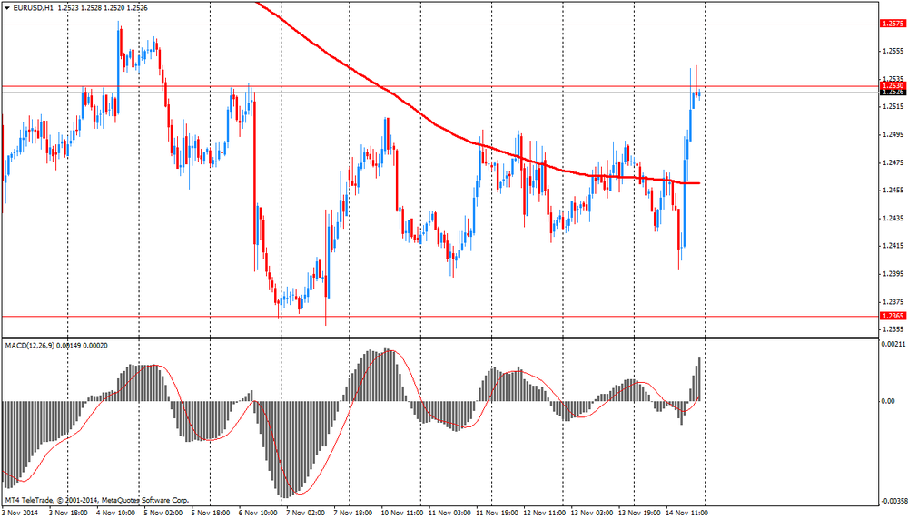 Евро получил некоторую поддержку от данных по ВВП еврозоны. Как стало известно, по итогам третьего квартала экономика расширилась на 0,2 процента вслед за повышением на 0,1 процента в предыдущие три месяца, которое было пересмотрено с 0,0 процента. Ожидалось, что ВВП вырастет на 0,1 процента. В годовом выражении рост в еврозоне составил 0,8 процента в третьем квартале (так же, как во втором квартале) против ожиданий рынка роста на 0,6 процента. Также данные показали, что ВВП Франции вырос в 3-м квартале на 0.3 процента против -0.1 процента во 2-м квартале и нулевого изменения в 1-м квартале. Рост частного потребления продолжил замедляться (+0.2 процента против +0.3 процента во 2-м квартале). Германии также чудом удалось избежать рецессии - ВВП страны вырос на 0.1 процента после сокращения на 0.1 процента кварталом ранее. Порадовала и Греция, ВВП которой по сравнению со 2-м кварталом вырос на 0,7 процента, то есть экономика Греции росла быстрее, чем экономики других стран еврозоны, отчитавшихся о ВВП. Тем не менее, Италии, как и ожидалось, в 3-м квартале не удалось преодолеть состояние рецессии. ВВП Италии сократился в 3-м квартале на 0.4 процента против результата -0.2 процента во 2-м квартале, подтвердив прогноз.