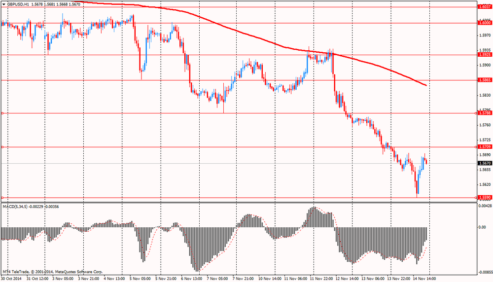 Британский фунт заметно подешевел против доллара США, оказавшись под давлением отчета Банка Англии по инфляции. Как стало известно, Банк Англии снизил прогнозы роста ВВП Великобритании на последующие два года и отметил вероятность падения уровня инфляции ниже 1% в годовом выражении в ближайшие месяцы из-за опасений того, что проблемы еврозоны негативно скажутся на экономике Великобритании. При этом Банк Англии сохранил прогноз роста ВВП Великобритании на 2014 год на уровне 3,5%. В ежеквартальном инфляционном отчете британского ЦБ отмечается, что в 2015 году экономика страны может вырасти на 2,9%, а в 2016 году рост может замедлиться до 2,6%. Августовский прогноз предполагал рост ВВП Великобритании в следующие два года на 3,1% и 2,8% соответственно. Также Британский ЦБ ухудшил прогноз роста экономики валютного блока, основного внешнеторгового партнера страны, на 2015 год с 1,75% до 1,25%.