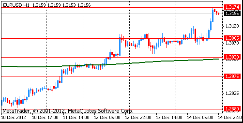 Во вторник евро вырос против доллара после того, как отчет показал, что доверие немецких инвесторов выросло в декабре до 7-месячного максимума. Немецкий индекс экономических ожиданий ZEW в декабре неожиданно подскочил с -15,7 пункта до положительного значения в 6,9 пункта, хотя ожидалось -12 пунктов. Индикатор текущей экономической ситуации в Германии по результатам исследования института ZEW в декабре повысился до 5.7 пунктов (ожидалось 6.0 пунктов) с 5.4 пунктов в ноябре. Единая валюта выросла против всех, кроме двух, из 16 основных валют на фоне снижения доходности периферийных облигаций. Испания успешно провела аукцион по 12- и 18-месячным ценным бумагам, сумев привлечь Е3.89 млрд, что оказалось больше планируемых Е3.5 млрд. Евро также вырос против доллара США после появления новостей о том, что Греция, вероятно, достигнет целевого уровня выкупа облигаций в 30 млрд евро. Индекс доллара упал больше всего в неделю, так как рынки ожидают пресс-конференции Бернанке в надежде услышать детали потенциальной новой программы количественного смягчения. Индекс доллара, который отслеживает доллар против валют шести торговых партнеров США, упал на 0,3 процента до 80,103, это самое большое падение с 4 декабря. Инвесторы ожидают, что ФРС немного скорректирует свою денежно-кредитную политику и повторит обещание об увеличении баланса для предоставления рынкам достаточной ликвидности. Покупки облигаций, которые, как ожидается, будут объявлены в среду, называют четвертым раундом количественного смягчения.