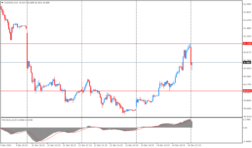 Доллар США вырос до 14-летнего максимума после оглашения результатов декабрьского заседания Федеральной резервной системы США. Как и ожидалось ФРС повысила проценты впервые в этом году, а также повысила прогноз по поводу повышения ставок в следующем году.