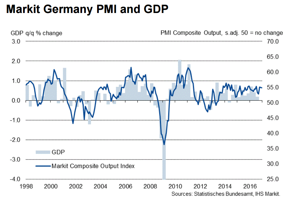 Предварительные данные, опубликованные Markit Economics, показали, что индекс деловой активности в производственном секторе увеличилась в декабре до 54,2 пункта по сравнению с 54,1 пункта месяцем ранее. Последнее значение было самым высоким с марта 2015 года. Кроме того, показатель совпал с прогнозами экспертов. Стоит подчеркнуть, индекс остается выше отметки 50 пункта, что указывает на расширение активности, с октября 2009 года.