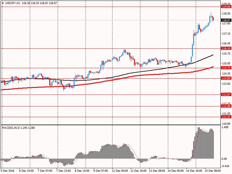 С начала азиатской сессии доллар США продолжил свой рост, начавшийся вчера, после оглашения результатов декабрьского заседания Федеральной резервной системы США. Как и ожидалось ФРС повысила процентные ставки впервые в этом году, а также повысила прогноз по поводу повышения ставок в следующем году. ФРС наметила примерно три повышения ставки в 2017 году, в результате которых ставка овернайт в следующем году достигнет срединного уровня 1,4% против 1,1% согласно прогнозам, опубликованным в сентябре. Власти также ожидают по три дополнительных повышения ставки в 2018 и в 2019 годах, при этом срединная ставка достигнет 2,9% в 2019 году. Прогнозы указывают на меньший консенсус среди властей в отношении повышения ставок после 2017 года. Несмотря на изменение перспектив денежно-кредитной политики, мнения руководителей в отношении роста, занятости и инфляции мало отличаются от сентябрьских прогнозов. Что касается инфляции, то власти по-прежнему ожидают, что она вернется к целевому уровню в 2% в 2018 году.