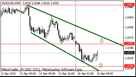 Если паре удастся преодолеть линию сопротивления канала, то возможен дальнейший рост пары с целями C$1.0370 (61.8% FIBO C$1.0305-C$1.0405) и C$1.0405 (максимум 12 апреля).