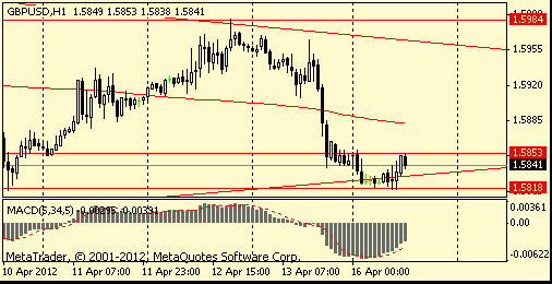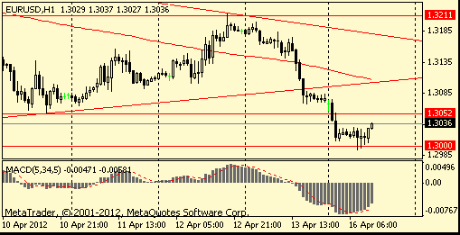 Давление на рынки оказывали опасения относительно Испании, доходность облигаций которой выросла до уровня 6%. Причиной этих опасений стали данные, показавшие рост заимствований испанских банков на 50% в марте. Также напряженности способствовали данные Государственного бюро статистики Китая, сообщившего, что ВВП страны в I квартале 2012 г. вырос на 8,1% в годовом исчислении при прогнозах на уровне 8,3%. Это значение стало минимальным за 3 года. Таким образом, темпы рост экономики Китая замедлились, по сравнению с IV кв прошлого года, когда прирост показателя составлял 8,9%. После таких данных шансы на смягчение денежно-кредитной политики правительством страны значительно увеличились.