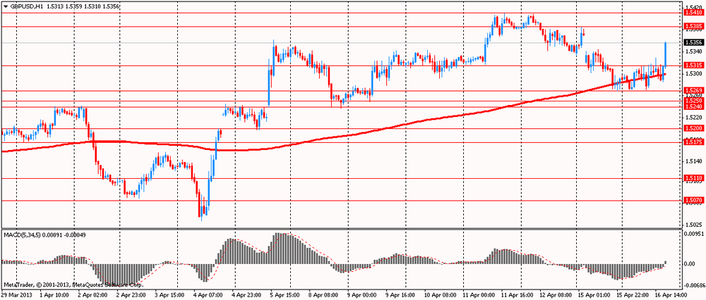 Сейчас пара торгуется с повышением на 0.5% в районе $1.5355. Сопротивление отмечено на $1.5385 (максимум 5 апреля), $1.5410 (максимумы 11-12 апреля). Поддержка находится на $1.5270 (минимум 15 апреля), $1.5250 (минимум 9 апреля) и $1.5240 (минимум 8 апреля).