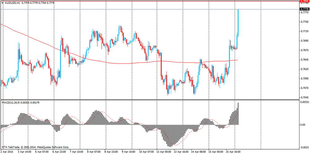 Австралийский доллар резко вырос после публикаций данных по занятости в Австралии. В марте уровень занятости Австралии вырос к 37.7, что выше ожиданий 15.1. Предыдущее значение было пересмотрено с 15.6 на 41.9 Уровень безработицы снизился менее чем на 0,1% до 6,1% с пересмотренного значения февраля 2015 года 6,2%. Также на рост австралийской валюты повлияли опубликованные ранее данные по инфляционным ожиданиям потребителей, которые в апреле составили 3.4%, что выше предыдущего значения 3.2%.