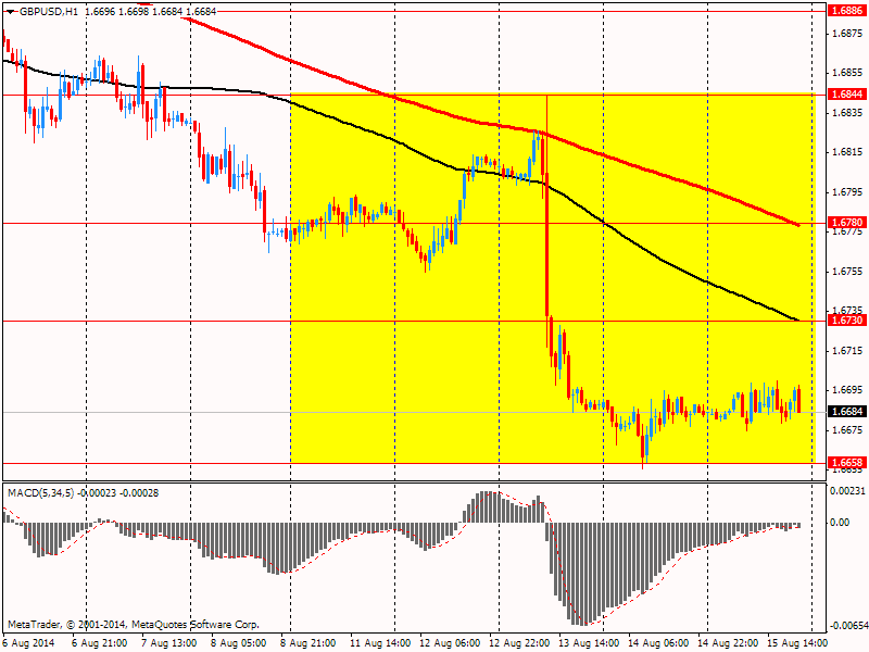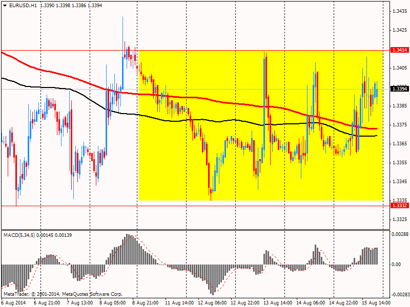 Во вторник евро оказался под давлением данных по настроениям в деловой среде от института ZEW. Индикатор экономических настроений от ZEW в Германии значительно снизился в августе 2014 года: соответствующий индикатор потерял 18,5 очков и в настоящее время составляет 8,6 пункта (долгосрочное среднее 24,6 пункта). Показав уменьшение восьмой раз подряд, индикатор достиг самого низкого уровня с декабря 2012 года, причем текущее снижение является самым сильным с июня 2012 года. Оценка текущей экономической ситуации в Германии снизилась. Соответствующий индикатор потерял 17,5 очков и в настоящее время составляет 44,3 пунктов. Индикатор экономических настроений от ZEW для еврозоны также значительно снизился в августе. Индикатор потерял 24,4 пункта по сравнению с предыдущим месяцем, и в настоящее время составляет 23,7 пунктов. Индикатор текущей экономической ситуации в еврозоне снизился на 2,3 пункта до -33,8.