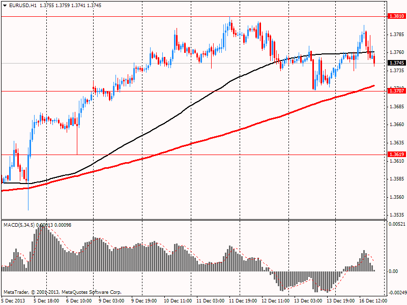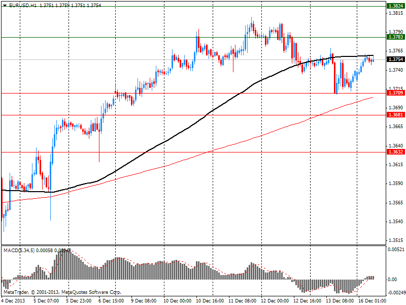 Поддержка проходит на $1.3750 (внутридневной уровень), 1.3727 (дневной минимум) и $1.3693 (минимум 9 декабря). Сопротивление отмечено на $1.3800 (психологический уровень), и $1.3811 (максимум 11 декабря).