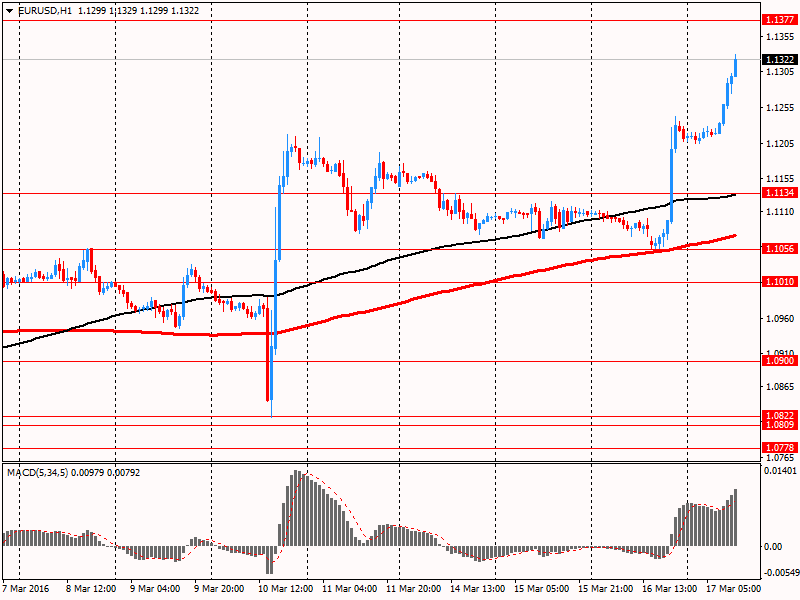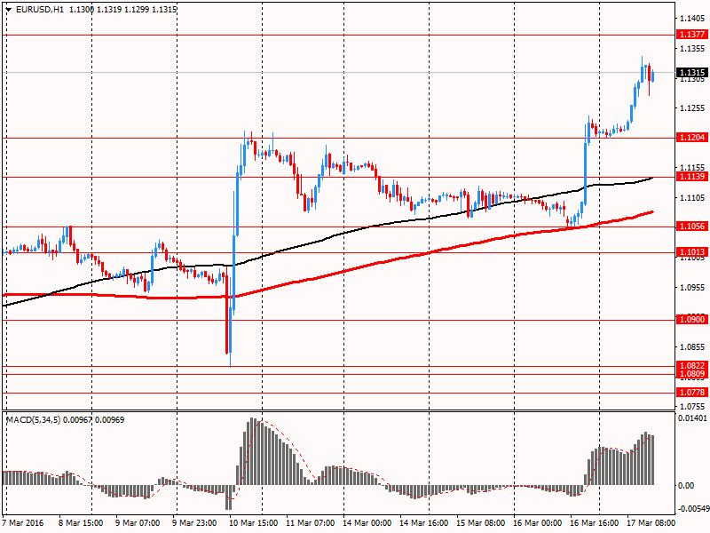 Евро значительно укрепился против доллара, впервые с 12 февраля поднявшись выше уровня $1.1300. Поддержку валюте оказывают итоги вчерашнего заседания ФРС, а также инфляционные данные по еврозоне. Окончательный данные, представленные Евростат, показали, что годовая инфляция в еврозоне составила -0,2% в феврале против 0,3% в предыдущем месяце. Последнее изменение совпало с прогнозами и предварительной оценкой. Напомним, в феврале 2015 года этот показатель составлял -0,3%. Базовый индекс, который исключает цены на энергоносители и необработанную пищу, составил +0,8% в годовом исчислении, что совпало с предыдущей оценкой. Аналитики ожидали повышение на 0,7%. Без учета энергии, табака, продуктов питания и алкоголя, инфляция в еврозоне составила 0,8% годовых и 0,4% в месячном выражении.