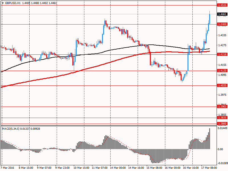 Фунт заметно подорожал по отношению к доллару, получив поддержку от общего роста тяги к рисковым активам после голубиного заседания FOMC. Позитивно на валюте также отразились итоги встречи ЦБ Англии. ЦБ единогласно (9-0) решил сохранить ставку на прежнем уровне 0,5%, а размер программы покупки активов - на уровне 375 млрд. фунтов. В протоколе заседания ЦБ отмечалось, что недавнее снижение фунта во многом связано с беспокойством по поводу выхода Британии из ЕС. Кроме того, было сказано, что повышение ключевой ставки в большей степени вероятно, чем нет. "Когда дело действительно дойдет до повышения ставок, оно будет осуществляться более медленными темпами и до более низких уровней, чем это было в предыдущие циклы ужесточения", - пояснили в ЦБ. Что касается ситуации с ценами, в Банке Англии заявили, что краткосрочные инфляционные перспективы мало изменились по сравнению с февральским отчетом и несмотря на январский рост, инфляция по-прежнему остается ниже целевого уровня 2%. "Индикаторы экономической активности за 1 квартале предполагают, что показатели реального ВВП сохранят темпы роста на уровне 4 квартале. Базовый рост экономики Британии получает поддержку благодаря сильному внутреннему спросу", - добавили в ЦБ.