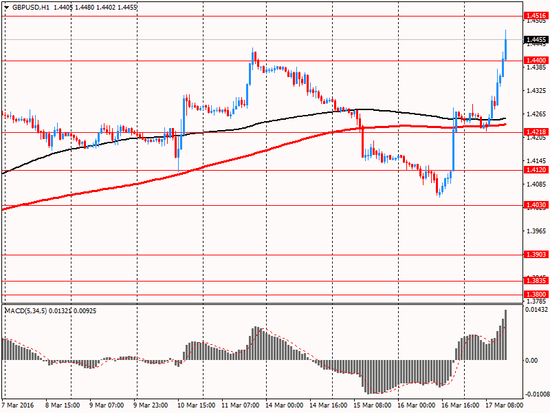 За тем поддержку валюте оказали данные по рынку труда Британии. Управление национальной статистики сообщило, что уровень безработицы в стране оставался стабильным в период с декабря по январь, на отметке 5,1%, что является самым низким значением за 10 лет. Последнее значение совпало с прогнозами экспертов. Кроме того, данные показали, что общий доход работников - в том числе бонусы - вырос на 2,1 процента годовых в течение трех месяцев по январь по сравнению с +1,9 процента в четвертом квартале и прогнозами на уровне +2,0 процента. Отдельно за январь зарплаты подскочили на 2,5 процента (самый большой рост с августа) после увеличения на 1,7 процента в декабре. Заработная плата без учета бонусов увеличилась на 2,2 процента с ноября по январь против +2,0 процента в последние три месяца 2015 года и против прогноза +2,1 процента. Общая зарплата в частном секторе, за изменением которой внимательно следит Банк Англии, выросла на 2,3 процента по сравнению с +2,1 процента в декабре.