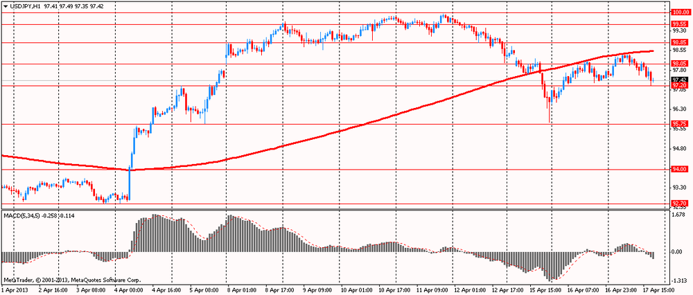 Пара USD/JPY обновила дневной минимум на Y97.20, но вскоре встретила поддержку и немного отскочила. Сейчас курс торгуется в районе Y97.45, с понижением на 0.07%.