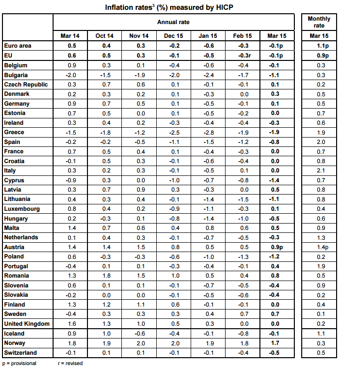 Евро ранее подорожал против доллара, обновив при этом вчерашний максимум. Поддержку валюте оказали данные по ИПЦ еврозоны. Окончательный отчет, опубликованный Статистическим бюро Европейского Союза, показал: годовая инфляция среди стран еврозоны составила -0,1% в марте по сравнению с -0,3% в феврале. Напомним, в марте 2014 года данный показатель был на уровне +0,5%. Тем временем, среди стран ЕС годовая инфляция также составила -0,1%, по сравнению с -0,3% в феврале. Годом ранее инфляция составляла 0,6%. В марте 2015 года отрицательные темпы наблюдались в двенадцати государствах.
