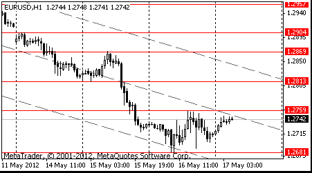 EUR/USD: вчера пара торговалась около минимума 15 мая $1.2720.
