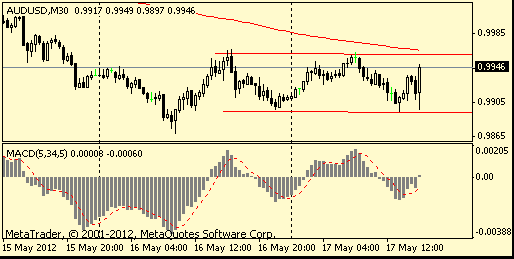 Пара отступила от сессионный минимумов и приблизилась к области сопротивления $0,9960 (сессионный максимум, максимум 16 мая).